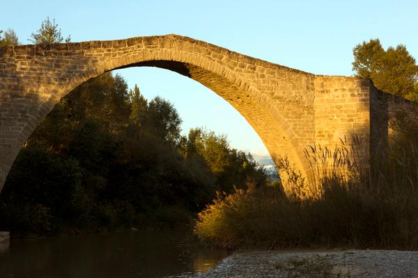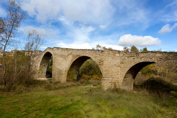 Los espolones triangulares sobre los que destacan las poderosas pilastras aumentan la resistencia ante el fuerte caudal del deshielo y siluetean de forma esbelta un puente de doble vertiente popularmente conocida como 'lomo de asno', por su semejanza con la espalda de un rocín. Proporcionalmente a la envergadura de la obra, es estrecho: unos 2,8 metros, lo cual era frecuente en los puentes medievales para evitar las grandes presiones sobre los arcos y garantizar su estabilidad. Hasta hace poco tiempo era traspasado por los tractores que acudían a la otra orilla a realizar labores agrícolas. Está pavimentado con cantos de piedra.